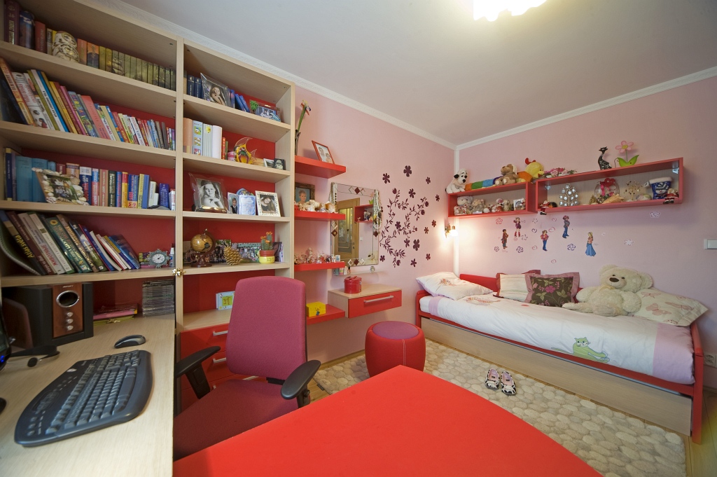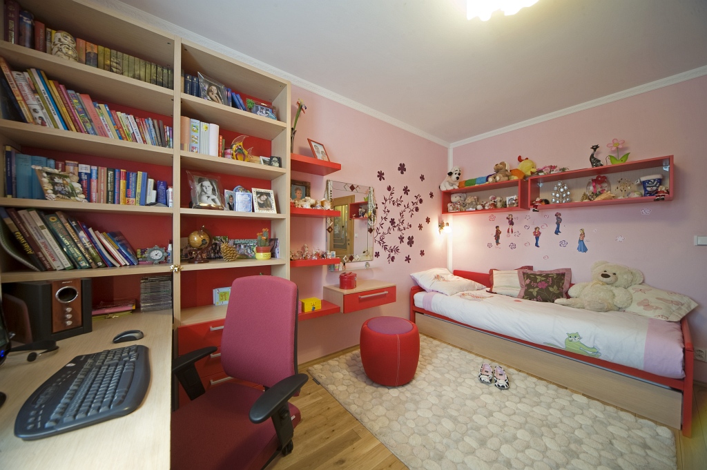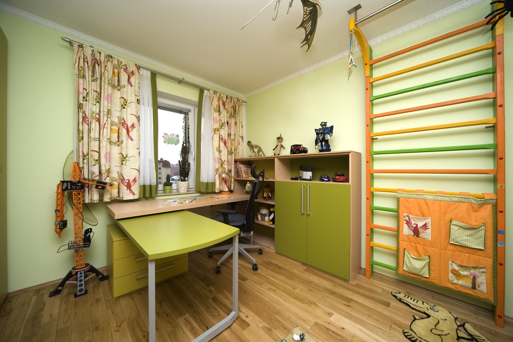 Design and delivery of bedrooms for a four-year-old boy and twelve-year-old girl. Turnkey project including the manufacturing of wall bars, textile decorations, window shadings and lighting.