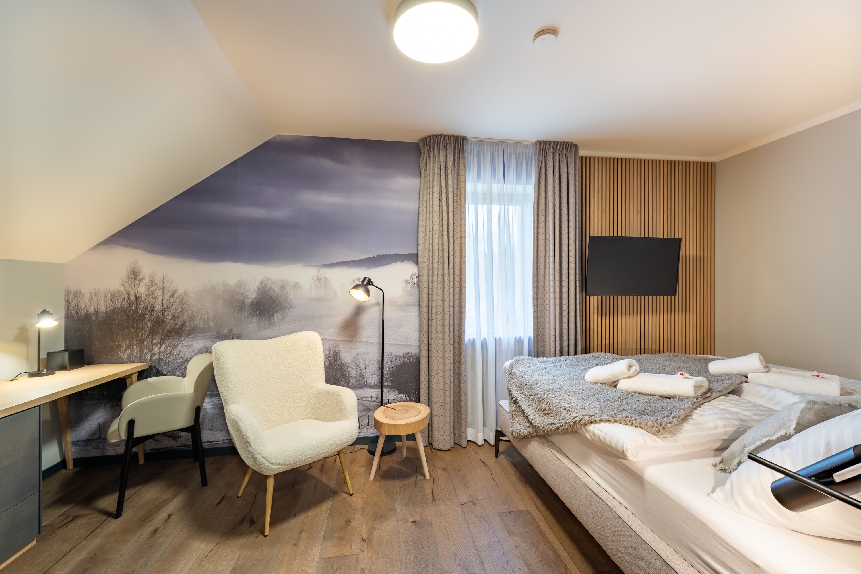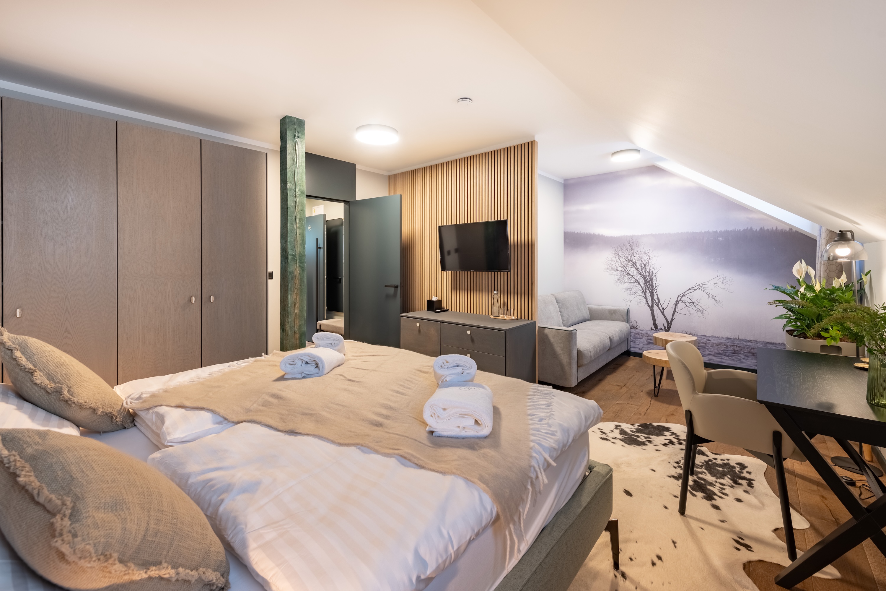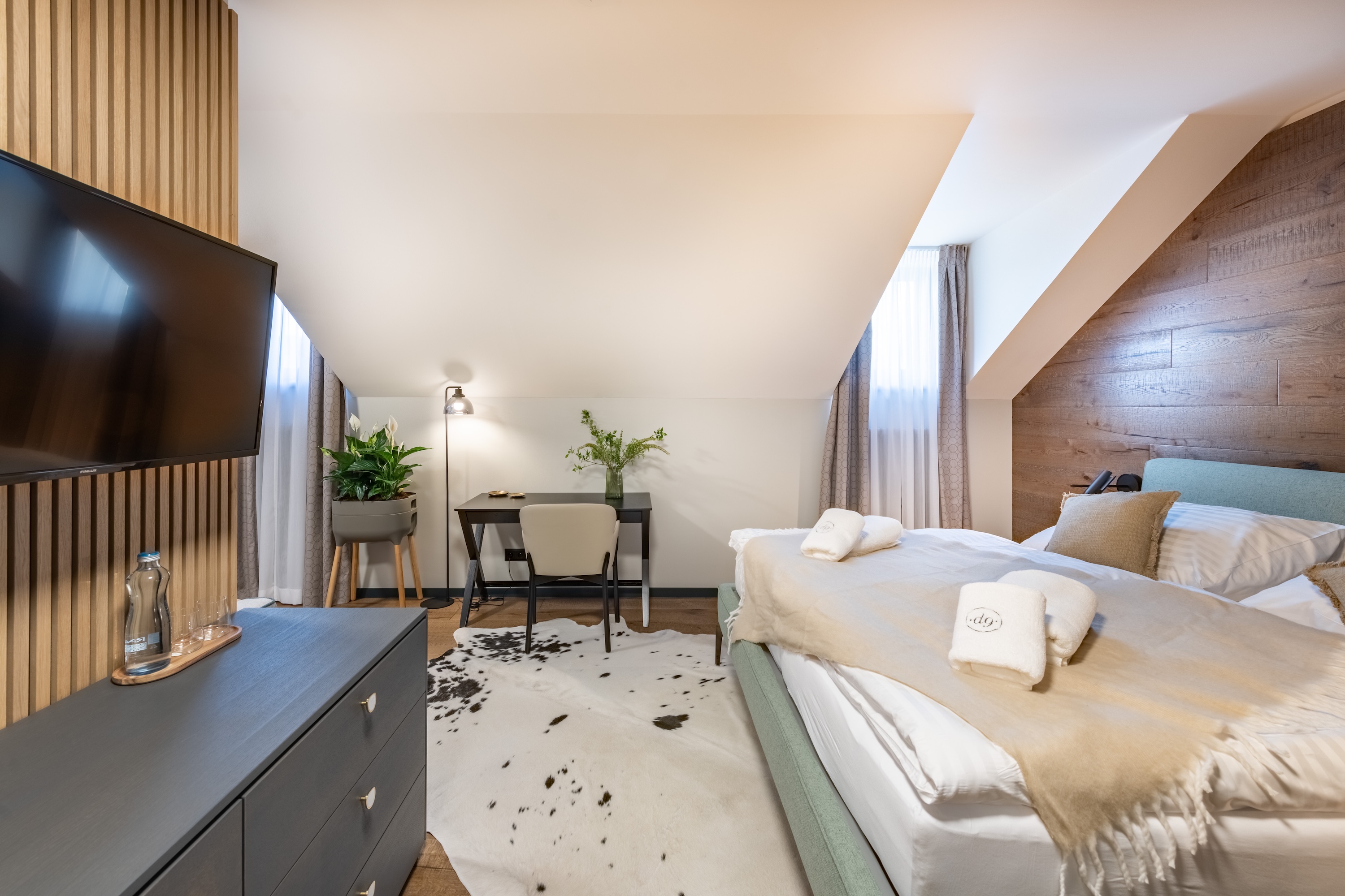 Upon the client's request, we designed a completely new concept for the property, which originally functioned as a guesthouse, transforming it into a prestigious hotel with suites/apartments and excellent cuisine.