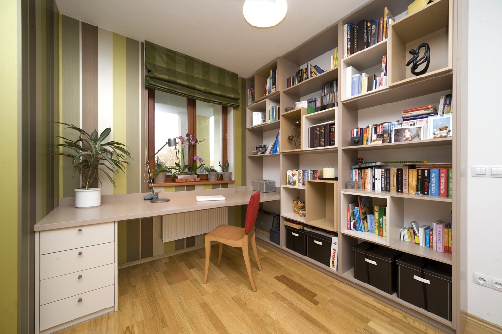 Small construction adjustments and partial refurnishing and completion of the bathroom. Delivery and assembly of the kitchen and other furniture, study and bedroom with a closet, window shading and lights. Design and installation of the children's room.