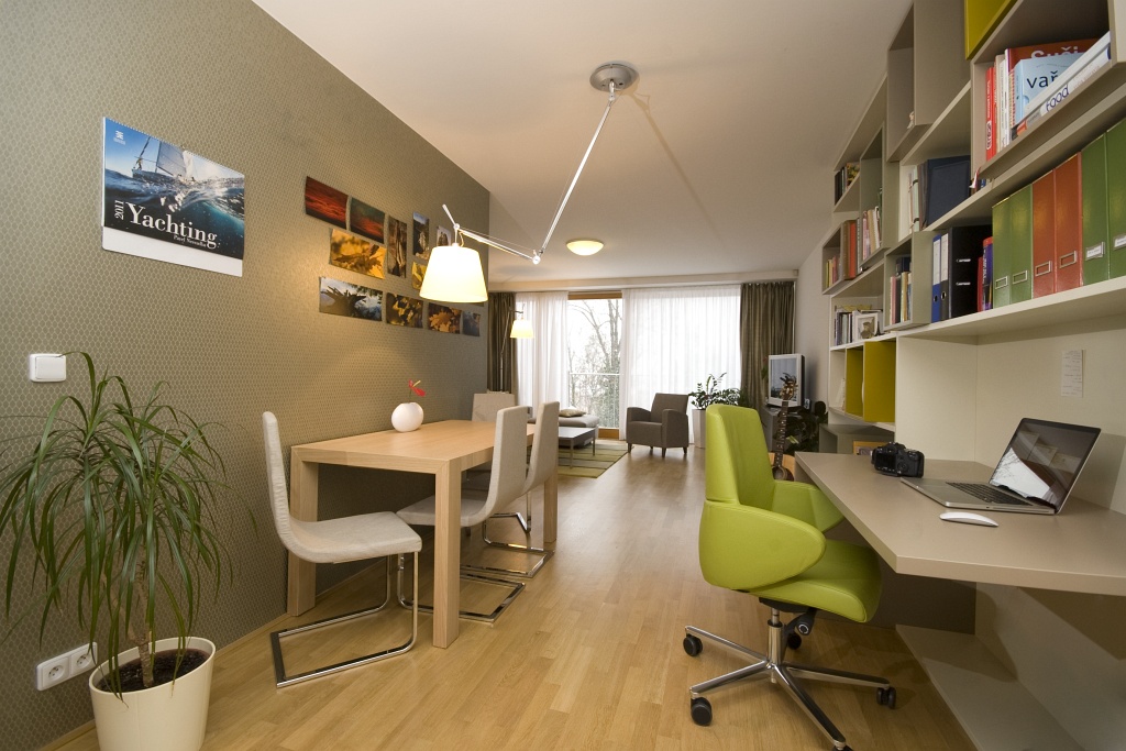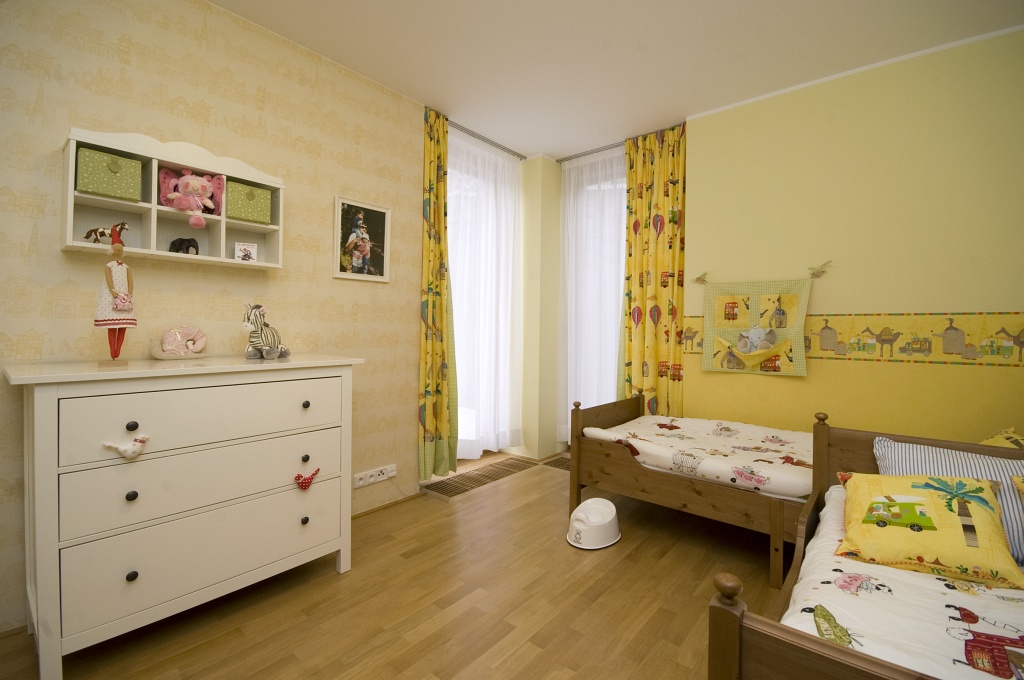 Partial furnishing and decoration of the flat with wallpaper and painting. Furniture for the living room, dining room with study, bedroom, children's room. Small adjustments of the construction and replacement of window shadings.
