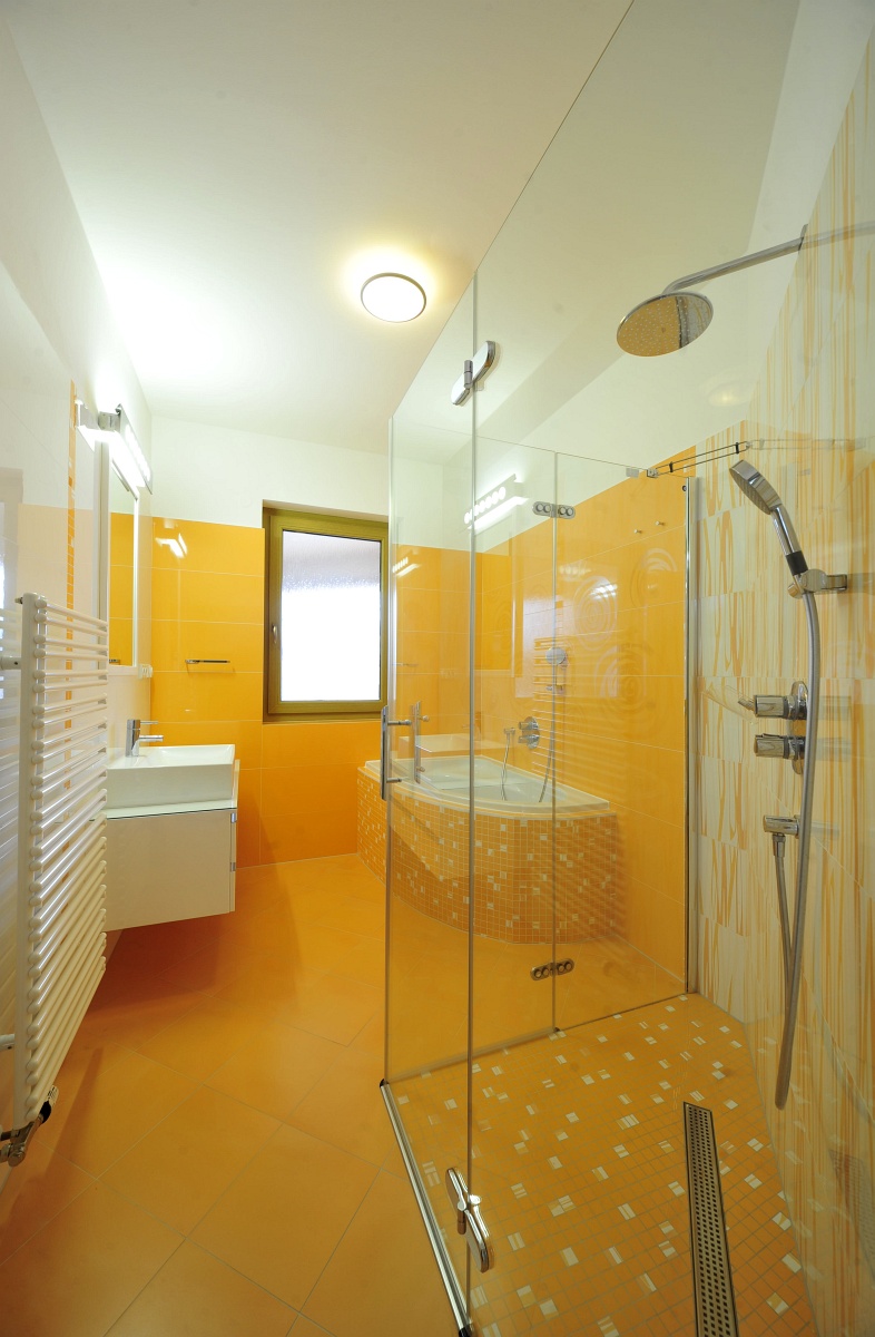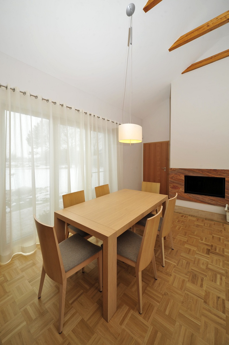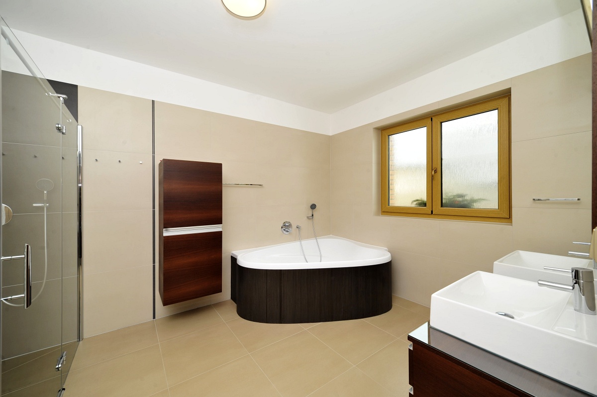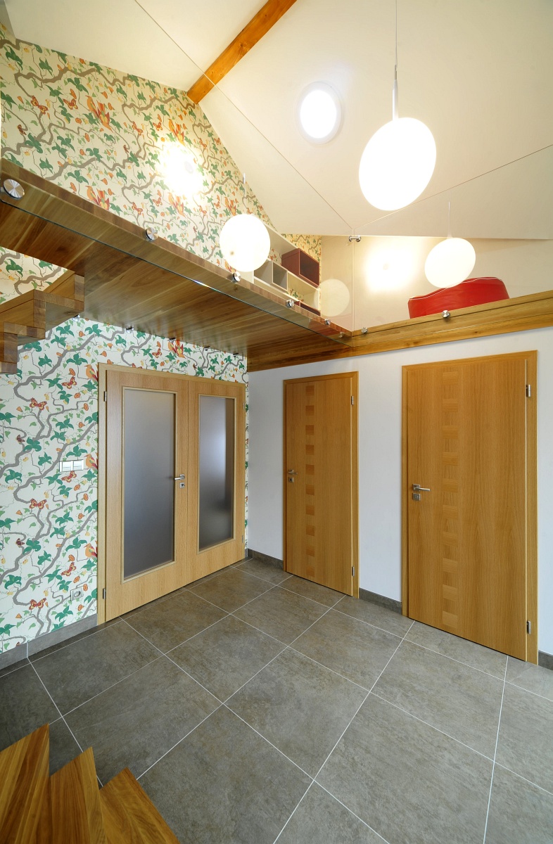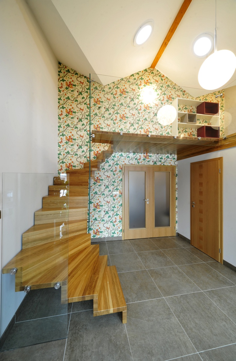 Cooperation with the investor from the rough construction phase. Design and installation of the final layout of the house. Selection and consulting of the installation of windows, doors and flooring. Design and selection of bathroom equipment including cladding and tiling. Delivery of a kitchen by Rational and all other furniture for the house. Design and manufacturing of a custom-made staircase with a landing, delivery of wallpaper, window shading and lighting.
