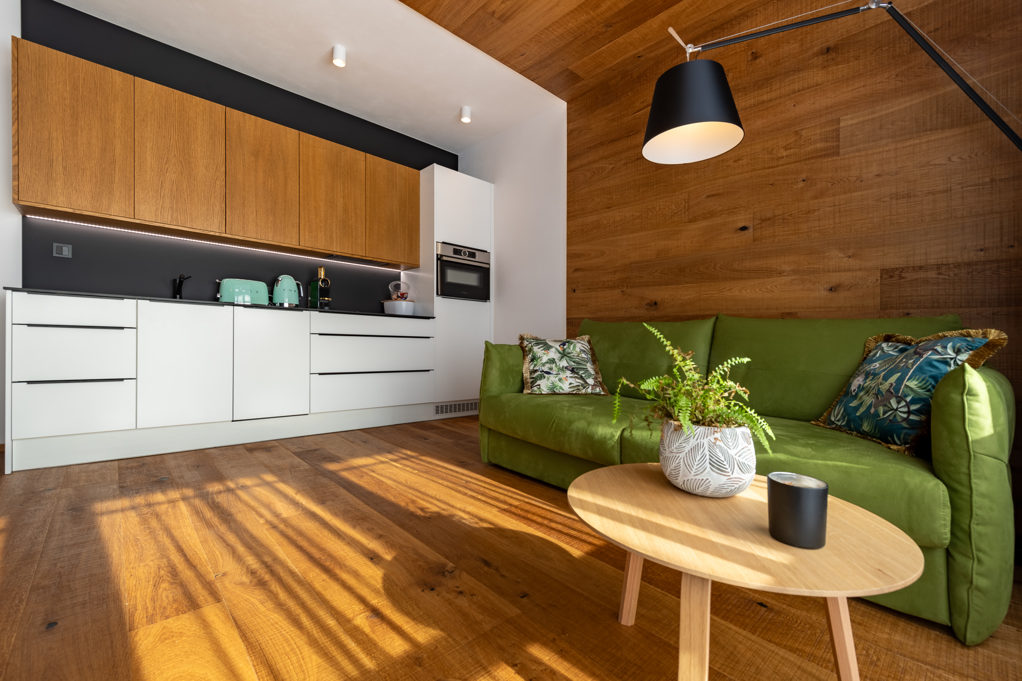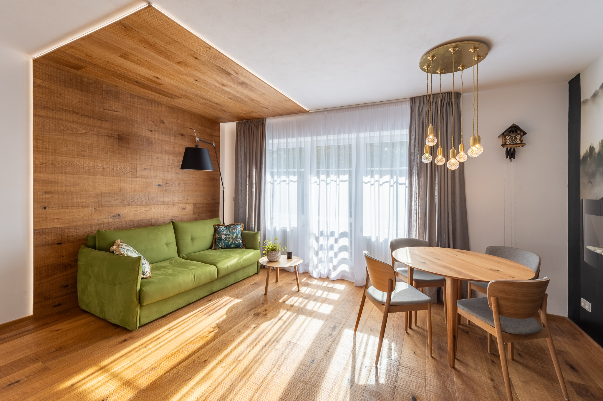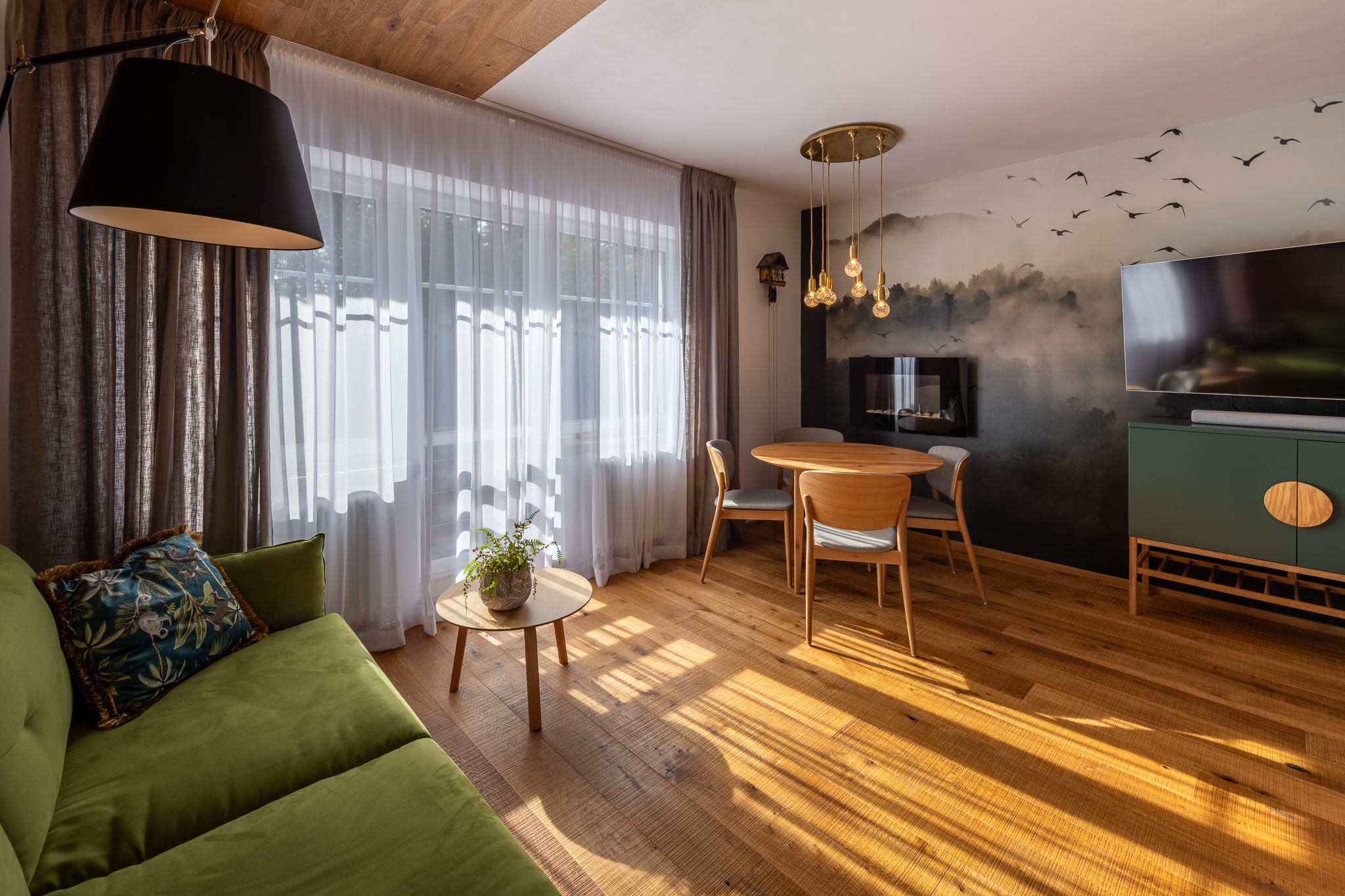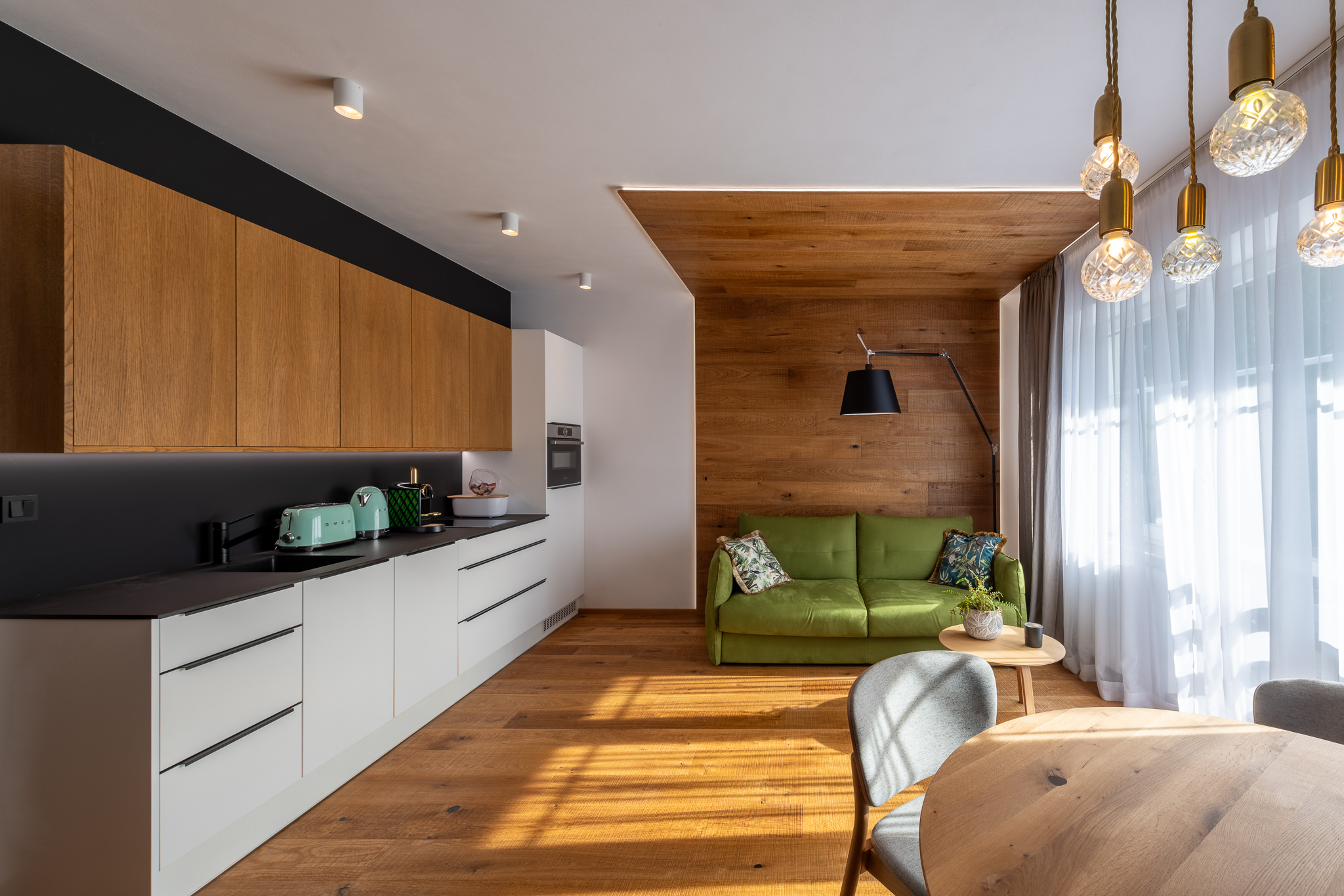 For our long-term client, we designed and executed the complete reconstruction of a mountain apartment, including furnishings and accessories.